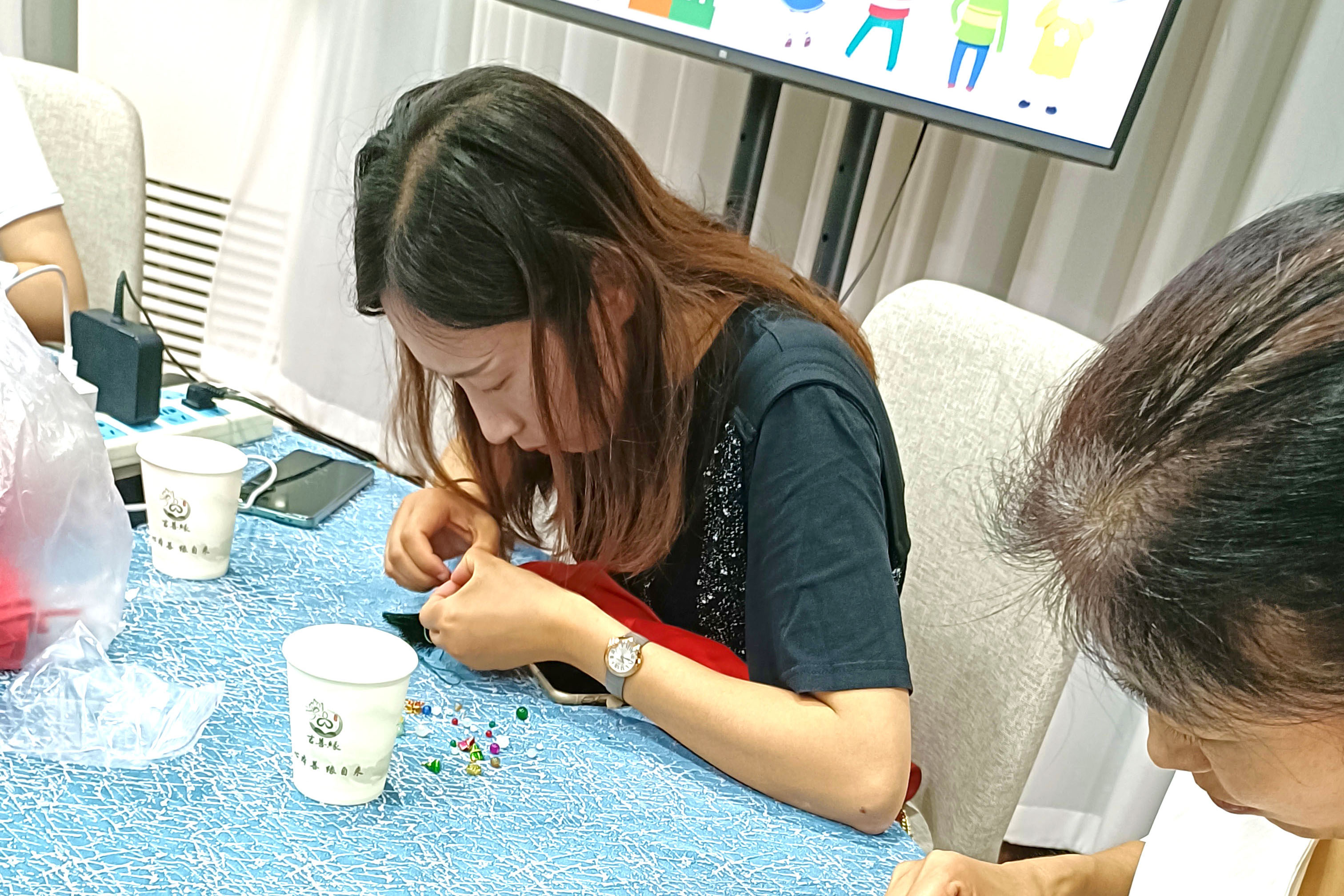 在隨后的動手制作環(huán)節(jié)中,女職員們充分發(fā)揮了自己的審美藝術(shù),精心挑選色珠搭配,相互交流編織心得,一串串色彩斑斕、做工精致的掛件呈現(xiàn)在眼前。