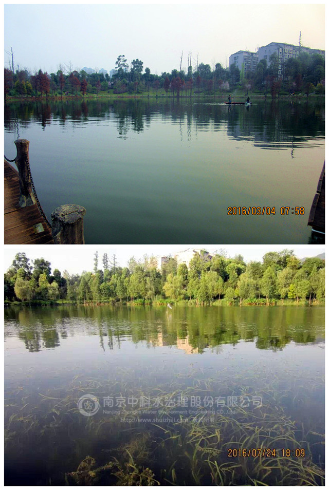 今年三月我區(重慶市璧山區)啟動觀音塘濕地公園生態修復項目,該項目通過構建水下森林的方式對水體進行凈化,并促進河道的自凈和循環,目前,該項目工程已施工完畢,進入整改調試階段,預計在年底前就能實現水下森林效果。