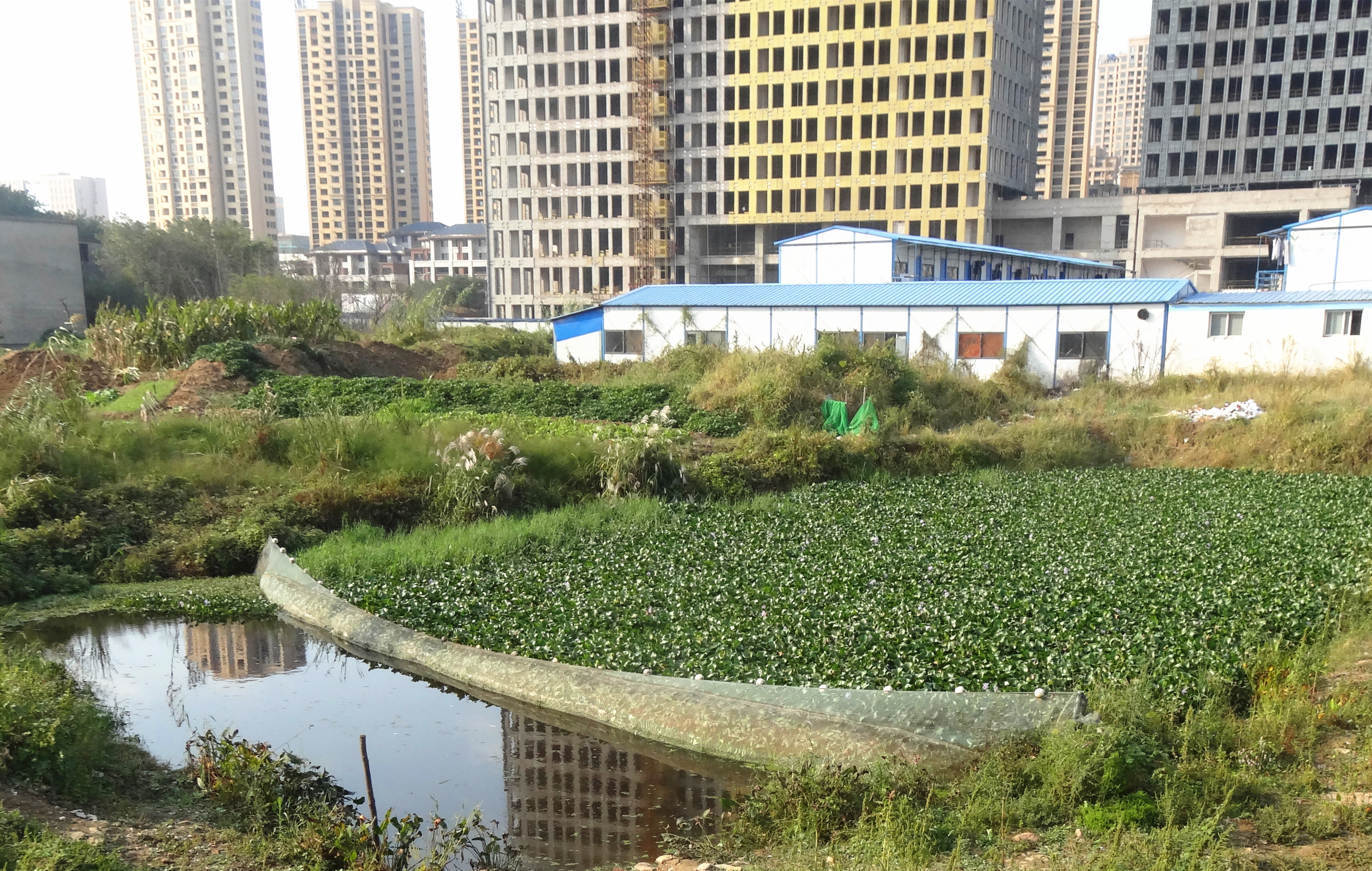 湖區北側補水口為湖區主要污染源,污水主要由上游魚塘水、周圍建筑工地生活污水、路面、山坡、土坡等自然雨水匯集。水中含有較多的油污、水色黑灰、水體渾濁、水質為劣五類。