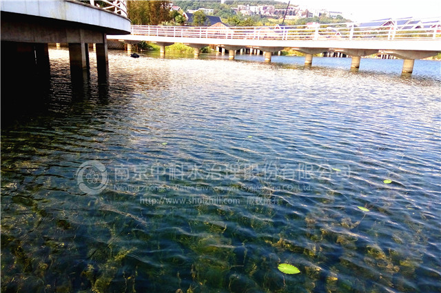 南北水塘水生態修復示范項目由南京中科水治理股份有限公司進行設計施工一體化工程,工程總面積22.8萬㎡,平均水深2.2m。南北水塘在修復前為典型的富營養化水體,清水型生態系統構建技術工程施工后,主要水質將達到地表水環境治理標準GB3838-2002 Ⅳ類以上,透明度達到1.5m及以上,且每年不少于300日。