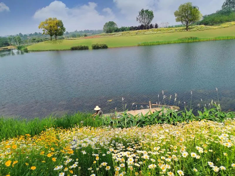 如果您夏季去過眉山黑龍灘,在水庫水源區(qū)的生態(tài)攔截溝的一池晶瑩剔透的碧水畔,陣陣涼風(fēng)送爽,盛夏的暑氣也消散了許多。水岸有錯落有致的濱水植被,繁花錦簇,美不勝收,一副令人心曠神怡的濕地美景。這條經(jīng)過了生態(tài)凈化的山溪隨著地勢下行汨汨注入黑龍灘水庫,為眉山人民群眾的“大水缸”水質(zhì)安全做出不可小視的貢獻(xiàn)。