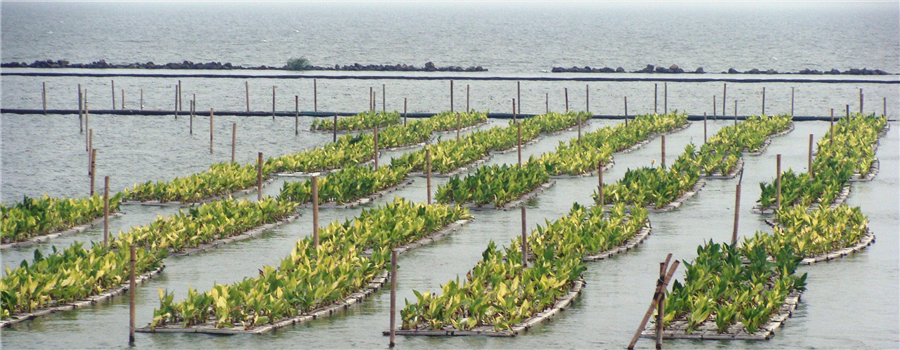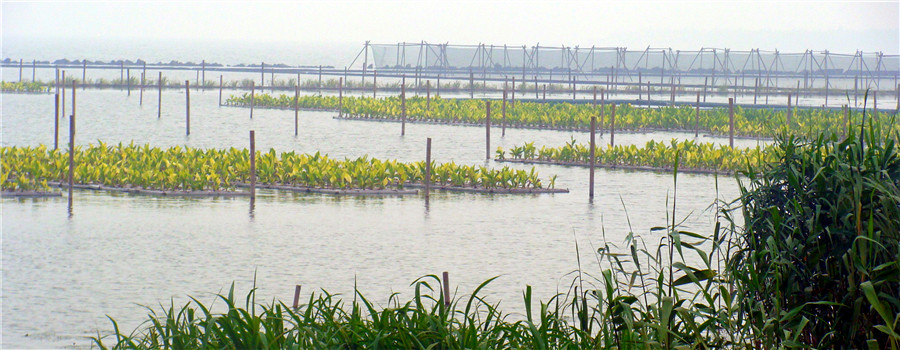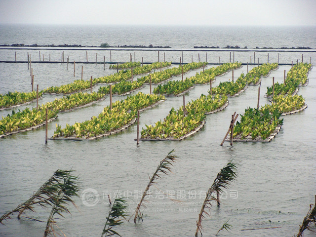 植物凈化浮島與岸帶蘆葦濕地系統